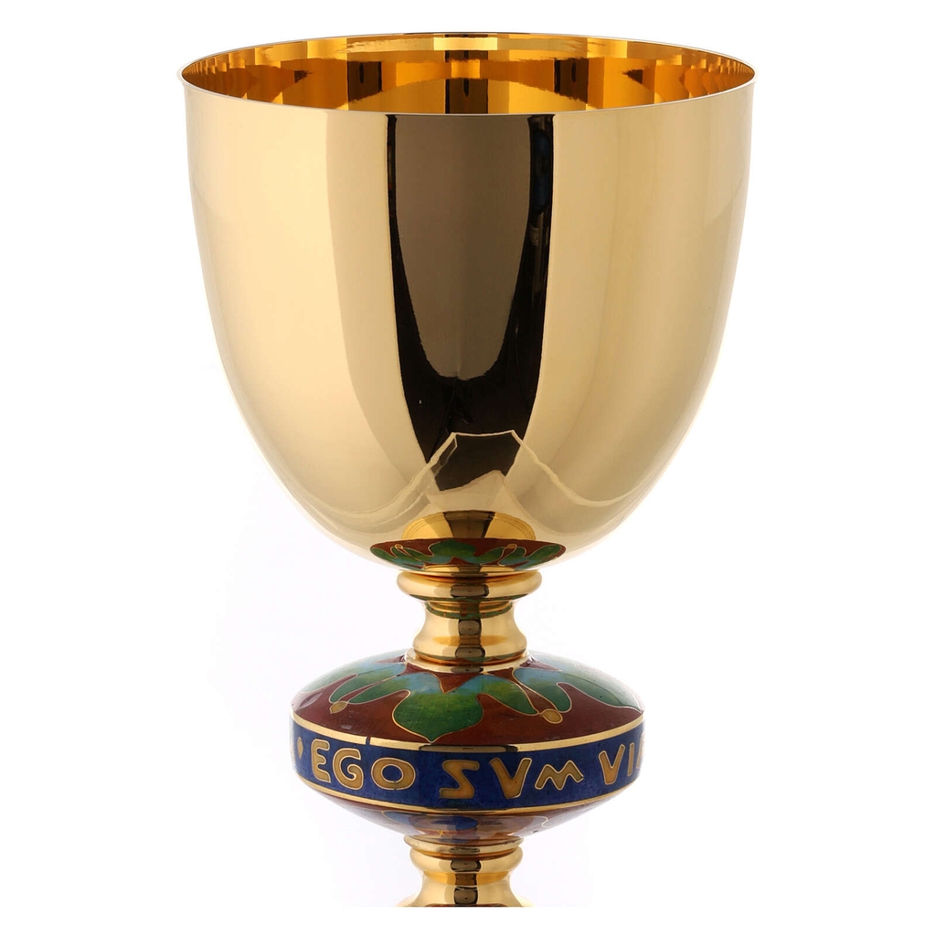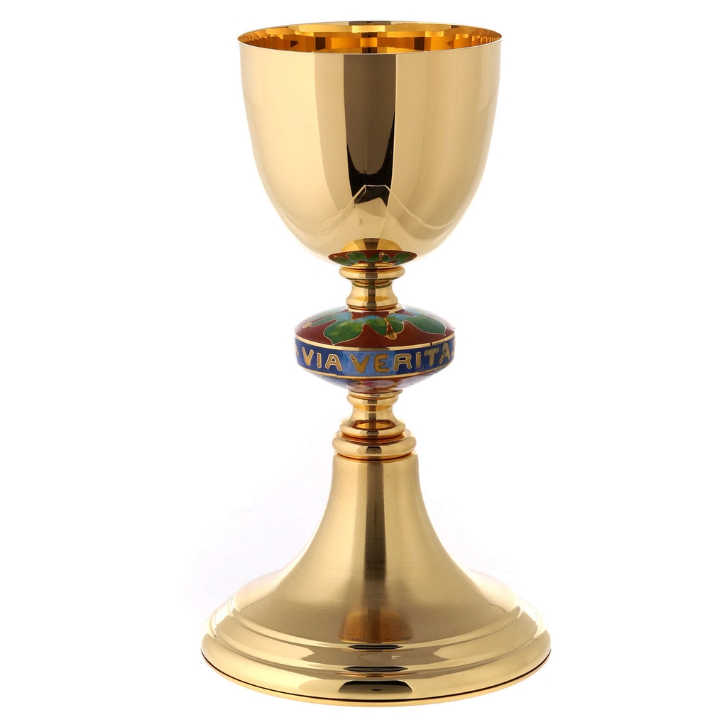 Các nghệ nhân tài năng của Ý đã tạo ra bộ chén thánh và bình thánh này với sự tâm huyết và kỹ thuật cao, thể hiện rõ trong từng chi tiết chăm chú và tinh tế. Với tay nắm tráng men cloisonné với pha màu đỏ xanh hòa quyện vừa tông nóng vừa tông lạnh, chiếc chén lễ bắt mắt được trang trí một cách tinh xảo.