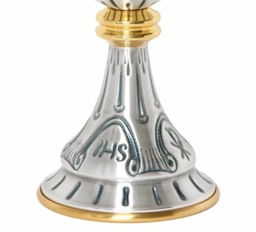 Phần đế chạm khắc các hoa văn liền kề, cùng biểu tượng IHS và Chi-Rho.