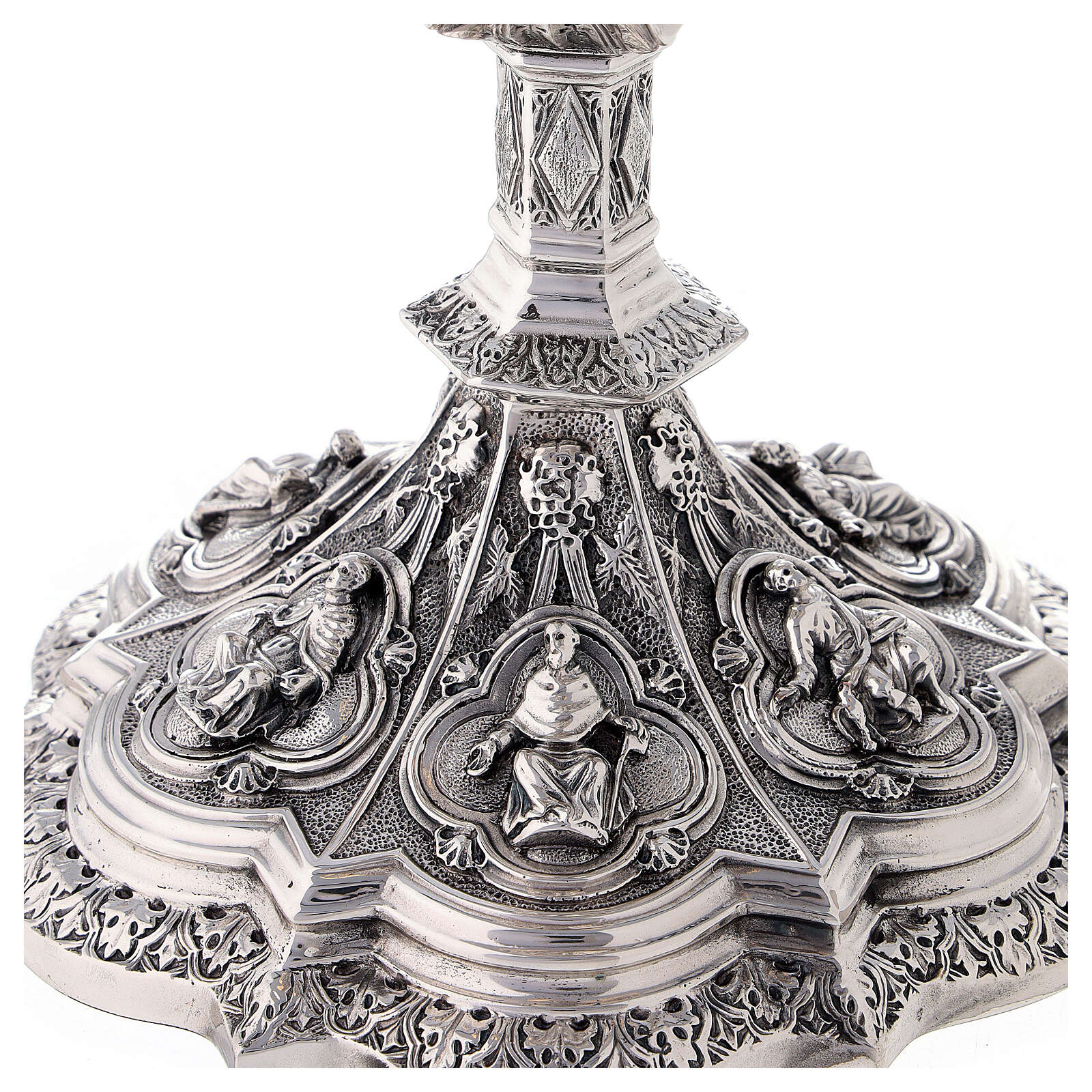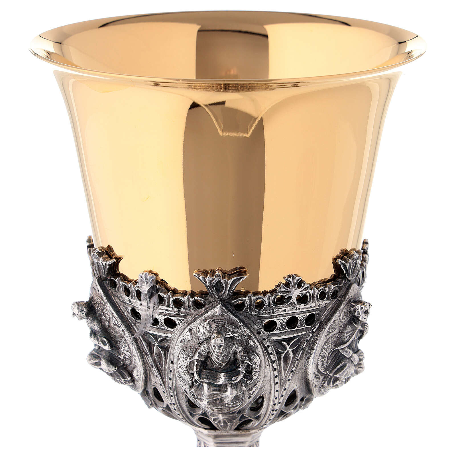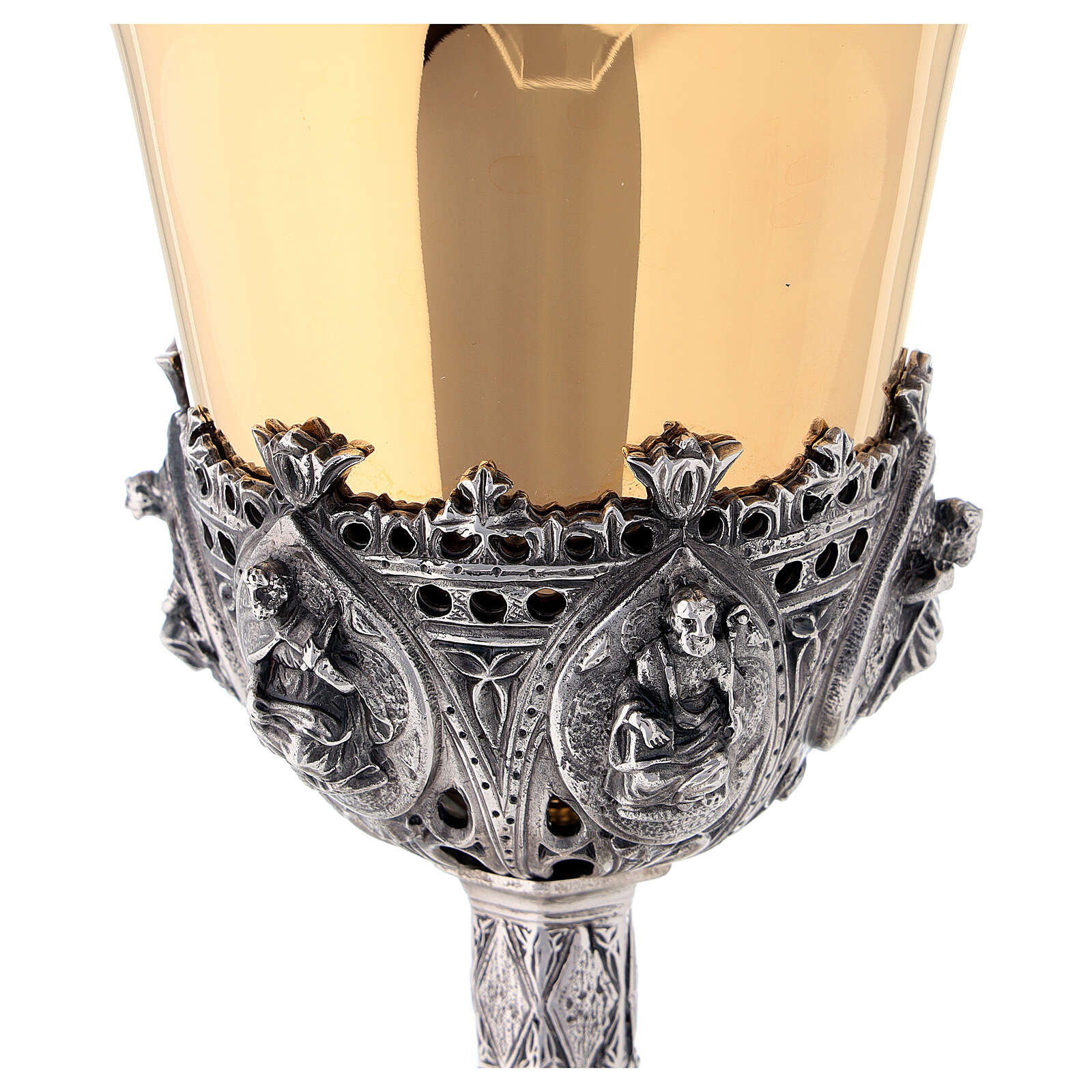 🔹 Phần cốc chén với thiết kế 6 vị thánh tông đồ được tách chia phần đế chén với 6 vị thánh tông đồ. cả hai như nói lên ý nghĩa những vị trụ cột của niềm tin Giáo Hội trong công cuộc rao truyền Tin Mừng.