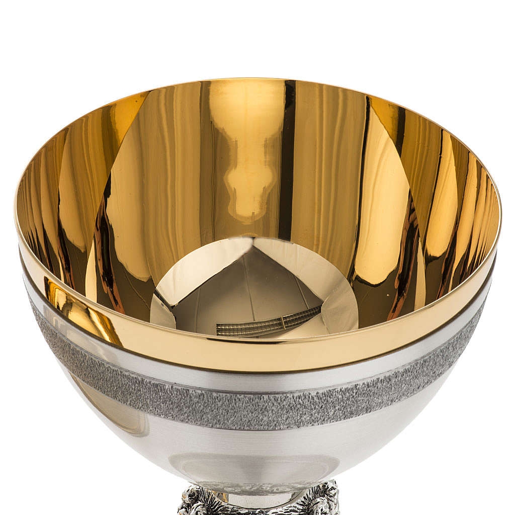 Tựa như bản hòa ca du dương vang vọng từ miền đất Ý xinh đẹp, Chén Lễ Tiệc Cưới Cana mang đến vẻ đẹp tinh tế, đơn giản nhưng đầy sức hút, khiến trái tim ta rung động bởi những giai điệu thiêng liêng ẩn chứa trong từng đường nét. Trải qua bàn tay tài hoa của các thợ thủ công truyền thống tại Ý, nơi những giá trị nghệ thuật và đức tin được gìn giữ qua bao thế hệ, Mẫu chén lễ Tiệc Cưới Cana được chế tác hoàn toàn thủ công bằng tay do các thợ thủ công truyền thống chế tác chén lễ tại Italy thiết kế. Chén Lễ được mạ bằng bạc cao và vàng cao cấp Italy.