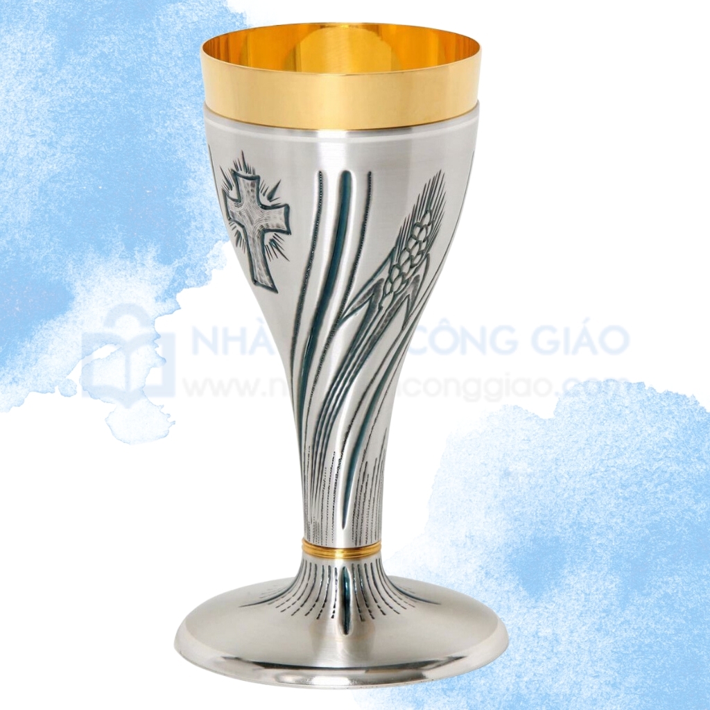 Mẫu thiết kế theo phong cách Italy với những đường nét uyển chuyển và tinh tế với độ cao 20cm. Tổng thể được dùng màu bạc làm nền, cốc bên trong được xi mạ vàng. Bên ngoài được bao phủ lớp resin giúp bền hơn. Phần thân Chén lễ được điêu khắc Thánh Giá và lúa mì. Biểu tượng của Hạt lúa mì và cây thập giá là sự tổng hợp khiêm nhường và quan trọng của Chúa Giê-su.