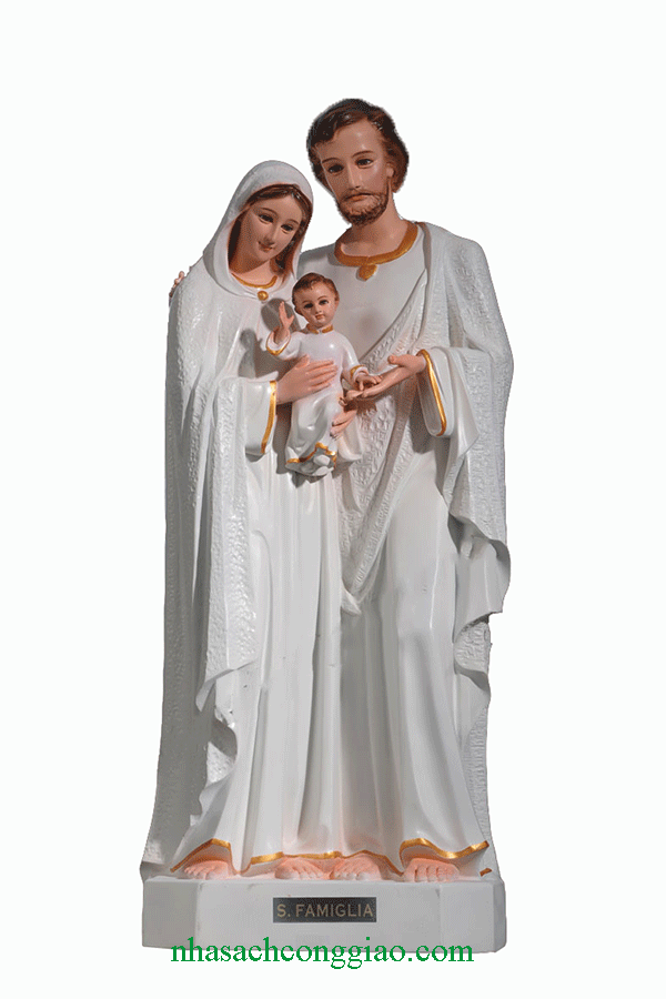A. Tượng Thánh Gia Đình Thánh Gia 70cm màu trắng thường là một khối liên kết, gắn chặt lấy nhau, bao gồm các tượng sau: