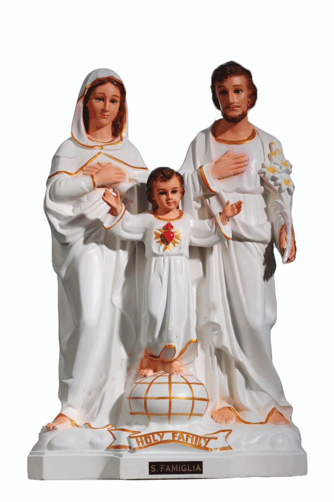 A. Tượng Thánh Gia đình Thánh Gia đứng 70cm màu trắng thường là một khối liên kết, gắn chặt lấy nhau, bao gồm các tượng sau: