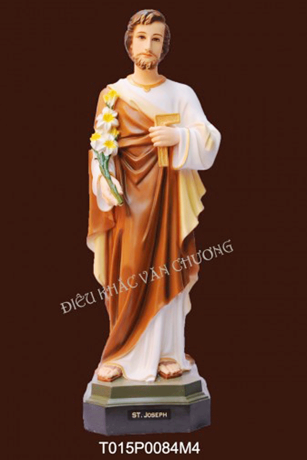 Tượng Thánh Giuse Thợ 84cm, với lớp phủ kim tuyến màu nâu, là một tác phẩm nghệ thuật được thiết kế và sản xuất bởi Điêu Khắc Văn Chương tại Việt Nam. Chất liệu chính của tượng là nhựa Composit kết hợp với đá thạch anh, tạo nên một sản phẩm vừa tinh tế, vừa bền vững. Các chi tiết được chế tác tỉ mỉ bởi những bàn tay khéo léo của các thợ thủ công Việt Nam, từ việc chà nhám cho đến việc sơn sửa, mang lại cho tượng một vẻ đẹp độc đáo và trang nghiêm.
